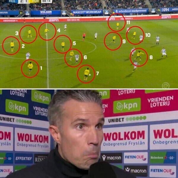 اين موضوع با واكنش رابين فانپرسي، سرمربي هيرنفين نيز همراه شد و او پس از بازي به ESPN گفت: گلي كه ما دريافت كرديم در شرايطي خاص به ثمر رسيد زيرا كه فورتونا ۱۲ نفره بود! به نظر ميرسد كه اين اتفاق امكان پذير است! باورتان ميشود؟ اين اتفاق رخ داد!